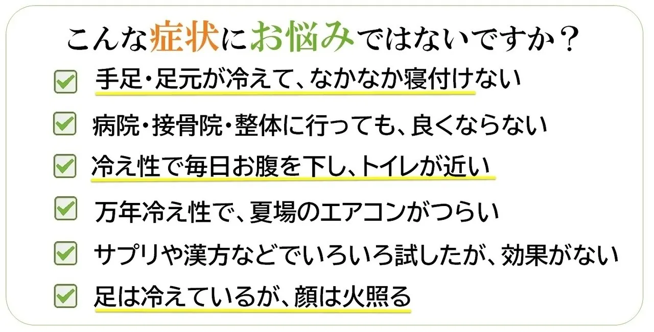 - サプリや漢方などでいろいろ試したが、効果がない